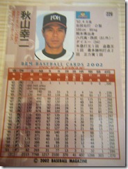 亞洲職棒即將開打,秋山幸二領軍的軟體銀行鷹也代表日本來台參賽.對於資深的球迷來說,相信對這位監督可是一點也不陌生.手邊這張則是大榮鷹時期的球員卡.在此跟大家分享.![]()